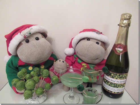 A photo shoot was then called including cocktail sprouts on sticks and a bottle of Chateau Neuf de Sprout – “Potent and Wind Inducing – traditionally trodden on ancient anthills by Les Bruxellois”!